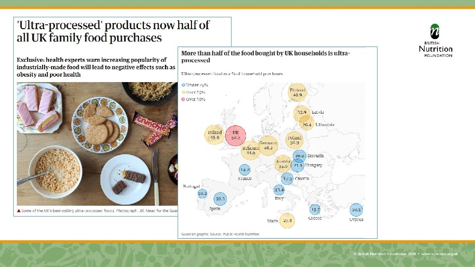 Are the findings as alarming as they seem? The BNF view Study of potential health effects of high ultra-processed food consumption very much in infancy – epidemiological evidence scarce & limited Many ultra-processed foods are HFSS foods and drinks or processed meats that there already is advice to reduce intake of Consumer messaging around reducing ultra-processed foods could be difficult – what comes to mind when asked? Dietary advice based on diet quality rather than on the degree of processing may be more helpful The term ‘processed foods’ often viewed negatively but probably perceived as a limited range of foods and not all processing is bad! Processed foods are difficult to avoid entirely – about identifying healthier options Media stories often lack detail & context – associations don’t prove causality!