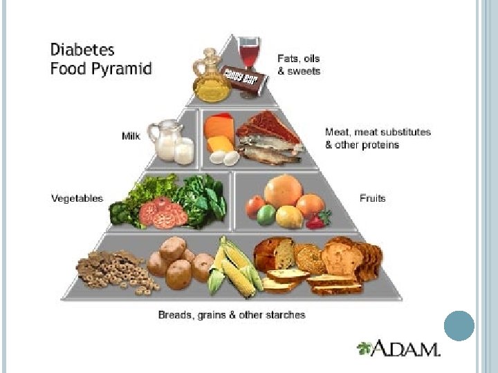 Rizikové faktory – obezita, věk >25 (30) let, předchozí porod plodu >4000 g, DM v rodině, opakované potraty, porod mrtvého plodu, hypertenze nebo preeklampsie v předchozím těhotenství, … o. GTT mezi 24. -28. t. t. (plošně) Nalačno: do 5, 5 mmol/l, 2 hodiny po zátěži: do 7, 7 mmol/l. Diagnóza gestačního diabetu je stanovena, je-li alespoň jedna hodnota v testu mimo normu. Léčba 1. Dieta s omezením sacharidů na 270 -300 g sacharidů na den, u obézních 225 g sacharidů na den (po celou dobu těhotenství) Obecně se doporučují zásady zdravé racionální stravy: jídlo v pravidelných intervalech, vyloučení jednoduchých sacharidů a náhradních umělých sladidel z denního příjmu, dostatek ovoce a zeleniny dle obsahu sacharidů, dostatek vlákniny, dostatečný pitný režim. Nevhodné jsou velké pauzy mezi jídly, nepravidelné a rychlé stravování. 2. Dieta + inzulin