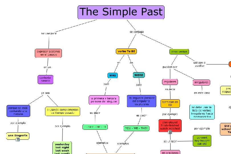 DIFERENCIAS AUXILIAR EXPRESIONES VERB TERMINAN NEGACIÓN ORACIONES PRESENT SIMPLE DOES/DO Every day, always, today, often S-ES-IES (third p) DOESN´T / DON´T She Works PAST SIMPLE DID Yesterday, last week/year, in 1990. ED reg. V. Irreg. v difer DIDN´T DIFIERE SUJETO RECURSO AUXILIAR VERBOS EXPRESIONES OTROS TIMPOS VERBALES - Yesterday DID - Last week/month/year/ - A week/month ago - On tuesday - In 1990 - Then - After that REGULAR E IRREGULAR COMPETENCIA LINGÜÍSTICA Y COMUNICATIVA TICS WATCHING COMPRENDE HABILIDADES FORMADO POR She worked I You He She It We They TIEMPO VERBAL PASADO SIMPLE Present Simple. Present Continuous. Present perfect. Past continuous. Past perfect Simple future CIBERGRAFÍA http: //www. englishpage. com/v erbpage/simplepast. html Video: ttp: //www. youtube. com/watch ? v=YF 2 j. Rf. Fe 82 Y SE ADQUIERE A TRAVÉS DE LISTENING SINGING READING AND WRITING IN CLASS SPEAKING
