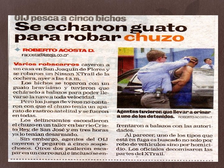 Tendencia a usar estructuras Gramática: sintaxis sintácticas simples: oraciones simples y breves (más coordinadas y yuxtapuestas) Uso de estructuras más complejas y desarrolladas, oraciones , más largas, con más subordinadas relativas, con todo tipo de c conjunciones, etc. Alta frecuencia de anacolutos Ausencia casi absolutas de y frases inacabadas. este tipo de estructuras. El orden de los elementos de la oración es muy variable. Orden más estables: sujeto/verbo/complementos. Elipsis frecuentes Elipsis menos frecuentes.