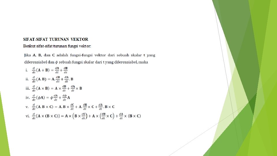 Divergensi Misalkan vektor V(x, y, z) = terdefinisikan diferensiabel pada setiap titik (x, y, z). Divergensi dari V atau div V , didefinisikan oleh: