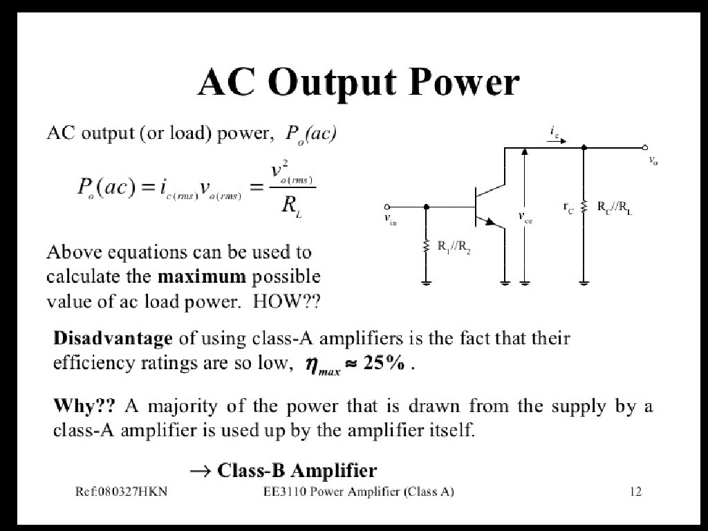 Difference Between Voltage Amplifier and Power Amplifier A voltage amplifier is designed to achieve maximum voltage amplification. However, it is not important to raise the power level. On the other hand, a power amplifier is designed to obtain maximum output power. Voltage Amplifiers The voltage gain of an amplifier is given by : In order to achieve high voltage amplification, the following points should be noted : 1. The transistor with high β, more than 100 is used in the circuit. In other words transistors with thin base are used in this case. 2. The input resistance of the transistor should be low as compared to the collector load resistance. 3. A relatively high load resistance is used in the collector. To permit this condition, voltage amplifiers are always operated with at low collector currents nearly 1 m. A. Power Amplifiers A power amplifier is needed to deliver a large amount of power and hence it has to handle a large amount of current. In order to achieve high power amplification, the following points should be noted : 1. The size of the power transistor is made considerably larger in order to dissipate the heat generated in the transistor during operation. 2. The base is made thicker to handle large current. In other words transistors with smaller β (normally between 5 to 20) are used in this case. 3. Transformer coupling is used for impedance matching.