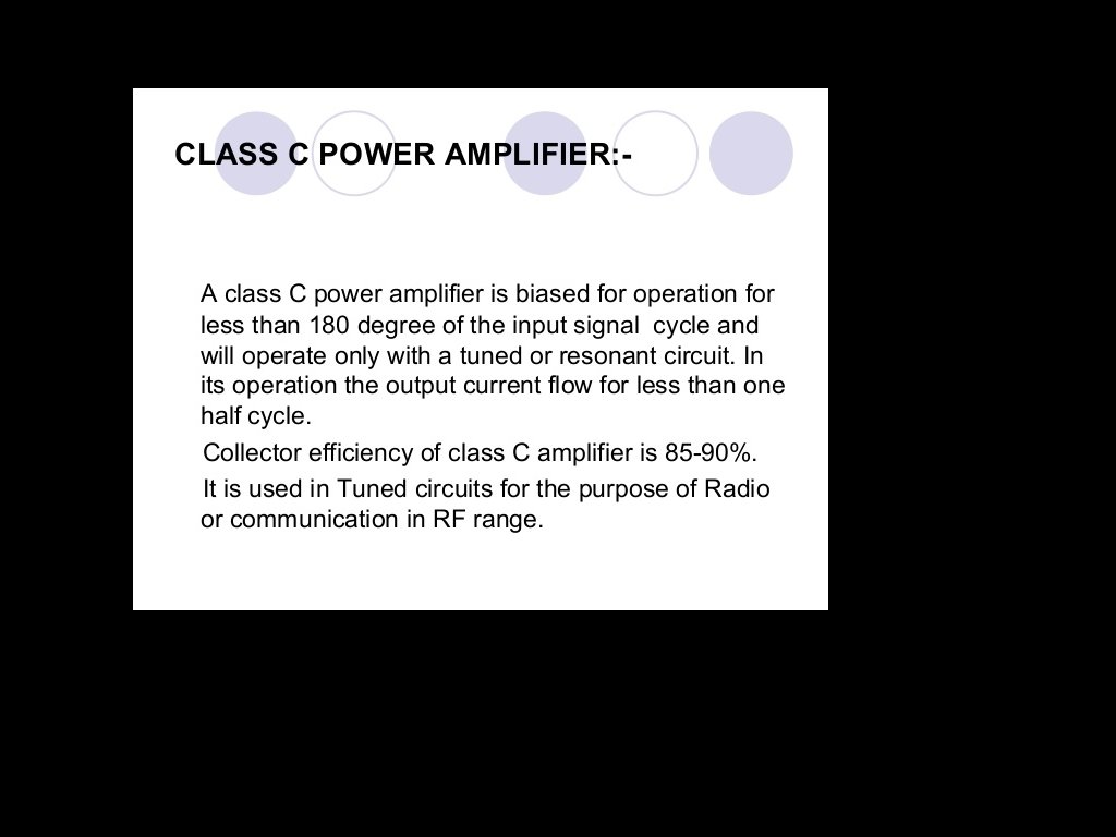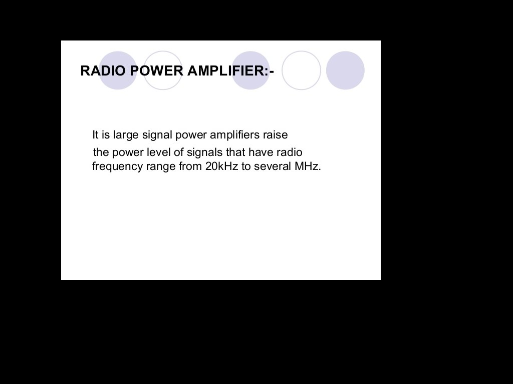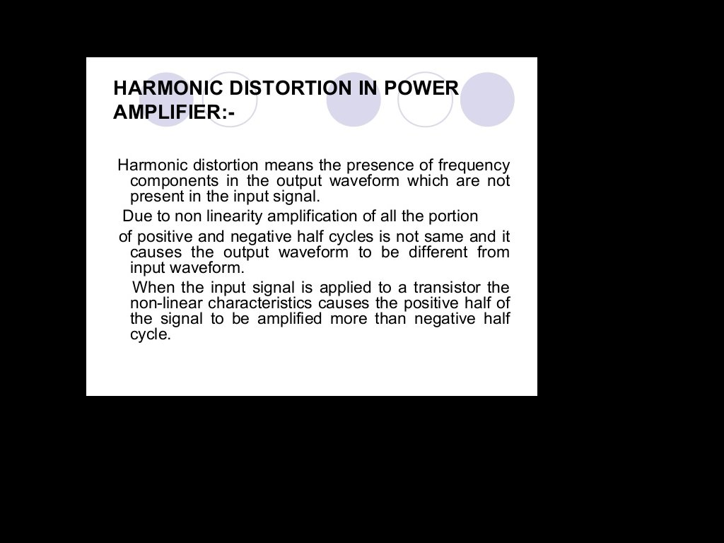 Important terms about power amplifier 1. Collector Efficiency - The ration of A. C. output at zero signal power to average D. C. power input to transistor. collector efficiency = average a. c. power output average d. c. power input 2. Distortion - When the output of an amplifier is not similar to the input signal we say distortion is there. This is due to non-linear characteristic of transistor. Types of distortion - a. Harmonic Distortion b. Phase distortion c. Frequency distortion 3. Power dissipation capacity Is defined as the ability of a transistor to dissipate the heat developed in it. 5
