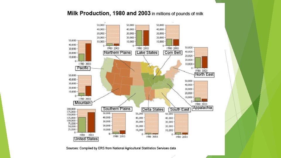 Dairy Farming (Intensive) Cold mid-latitude climates (generally) Northern U. S. (from New England to upper Midwest) Western & Northern Europe SE Australia & Northern New Zealand Milkshed Closer to milkshed = more milk Farther from milkshed = more butter, cheese, dried, evaporated milk