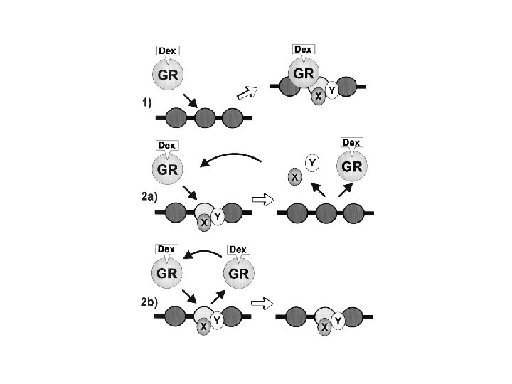 Hormone binds receptor, then Model 1: Ligand-bound receptor stably associates with HRE Model 2: Ligand-bound receptor binds, recruits co-activators, remodeling complex and then is recycled (either alone(2 b), or along with co-factors(2 a)). Mc. Nally et al. 2000 Science 287: 1262
