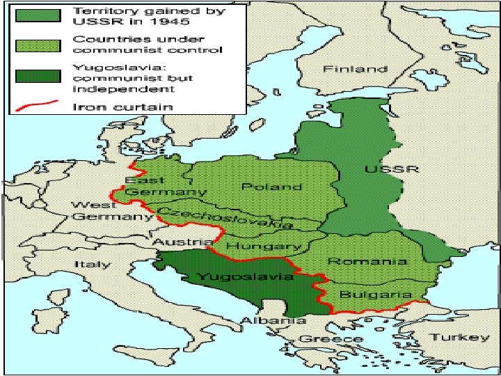 I. A Divided Europe A. Iron Curtain* of Communism— Western Europe democratic, Eastern Europe communist 1. =domination of USSR over the east