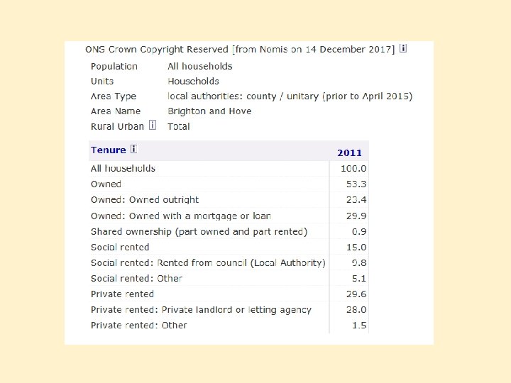 How do formal agencies represent Brighton? Tasks: Go to the Nomis website and find official labour market statistics for Brighton. https: //www. nomisweb. co. uk/home/profiles. asp Use census data from nomisweb to look at other formal representations. 1. Describe Brighton’s profile based on this evidence. For example, is Brighton wealthy, healthy, well educated, etc. ? 2. Do these statistics suggest Brighton is a rural or urban place? 3. Does this evidence support or contradict your informal representation of Brighton? 4. Do the formal and informal representations match in any way?