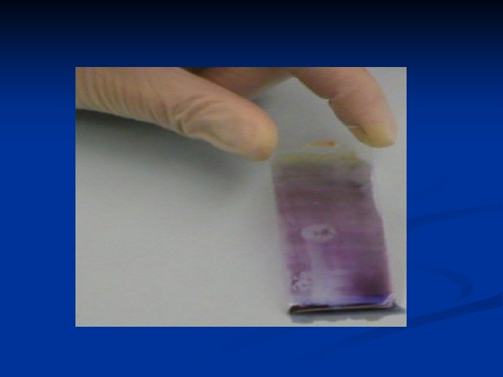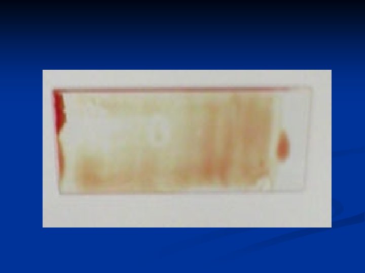 Staining the blood smear by: n n n n Put the dried slide on a staining rack. The blood smear should be stained as soon as possible certainly within 1 to 2 hours. Carefully drop Leishman's stain onto the blood film until the film is covered. Allow the stain to act for one to two minutes. Add distilled water to the stain and mix by blowing, this gives dilution of 1: 1 or 1: 2 The diluted stain should act for 15 -30 minutes Then wash it off with distilled water, continue washing until the film has a pink color. Shake off excess water and allow it to dry at room temperature