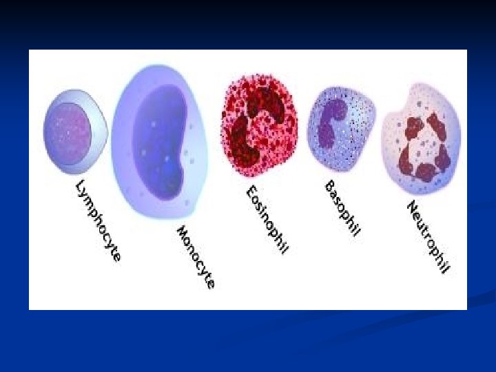 Lymphopenia (decreased number of lymphocytes): n n n n Characteristic of AIDS Acute infections Hodgkin's disease systemic lupus renal failure carcinomatosis Drugs: corticosteroids, lithium…etc. radiation (lymphocytes most sensitive to whole-body irradiation