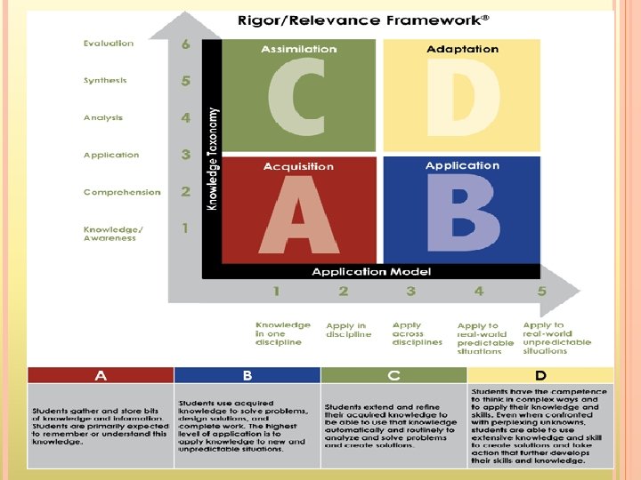 LIST MENU OR CHALLENGE LIST Description: � � � 10 Predetermined choices + 1 free choice Points per choice are based on level of Bloom’s Choices require differing amounts of time/effort Benefits: Students like having control over their grades & the ability to make up lost points by completing another choice � In-depth study � Higher & lower level activities for differing readiness levels � Limitations: � � � Only covers 1 -3 topics If 3 topics, objectives limited to individual student choices Heavy teacher preparation of materials Time Considerations: � 2 weeks maximum