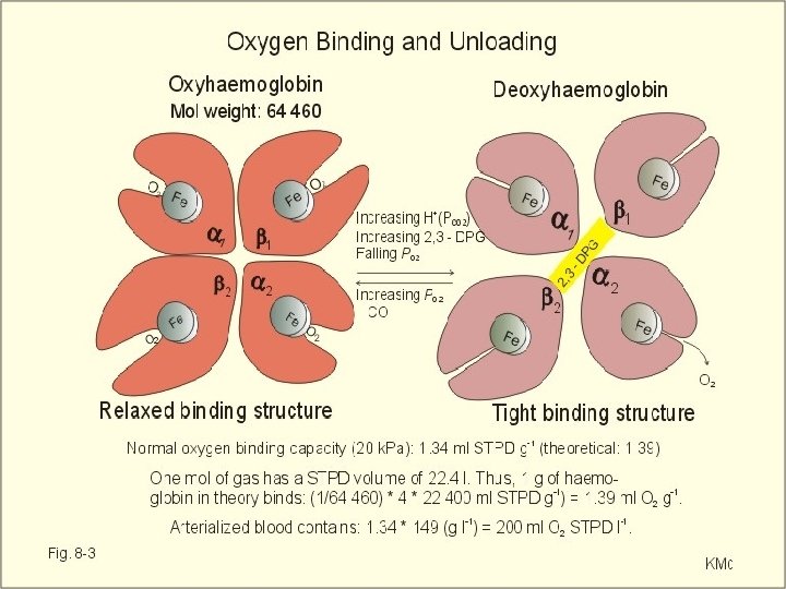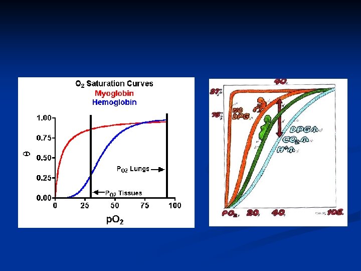 Propiedades HB n n n La disminución de p. H y aumento de DPG y CO 2 se produce como consecuencia del aumento de la actividad metabólica. Durante el ejercicio también aumenta la temperatura muscular. Todo ello favorece la cesión de O 2 desde la Hb a la mioglobina. La Hb fetal no es sensible a DPG. Su afinidad por el O 2 es mayor que la de la madre. Mioglobina: es un monómero, no tiene cooperatividad. Su afinidad por el O 2 es mayor que la de la Hb. Requiere PO 2 bajas (como la muscular) para ceder el O 2