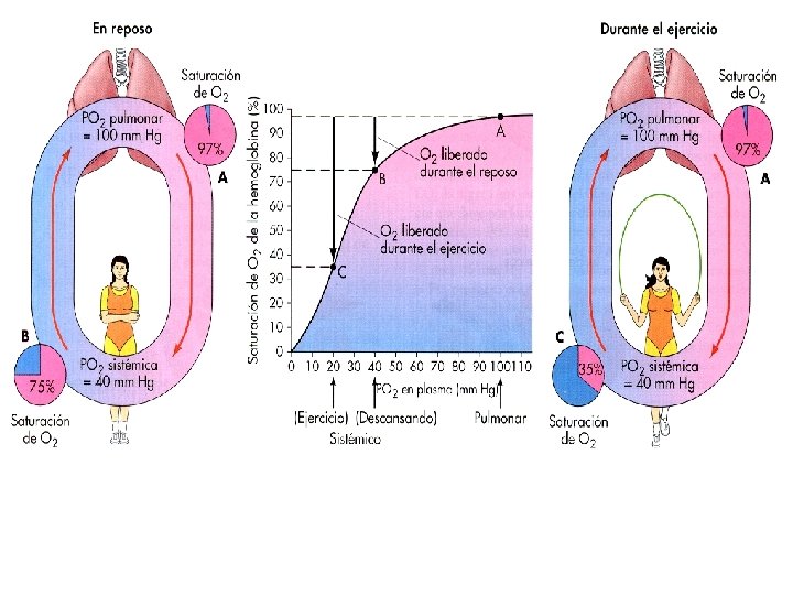 Presiones parciales (mm Hg) Atmosf Presión Esp. Muerto 760 Alveolar S. Arteria P. S. Vena P. 713 PH 20 47 PO 2 160 150 Teórica 150 Real 102 40 102 PCO 2 0, 2 0 40 46 40