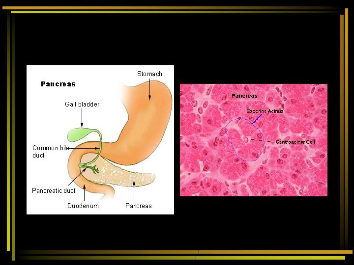 Endocrine function of the pancreas (29) • The endocrine function of the pancreas is to release insulin and glucagons (hormone) • Insulin causes most of the body's cells to take up glucose from the blood • Glucose is stored as glycogen in the liver and muscle, and stops use of fat as an energy source