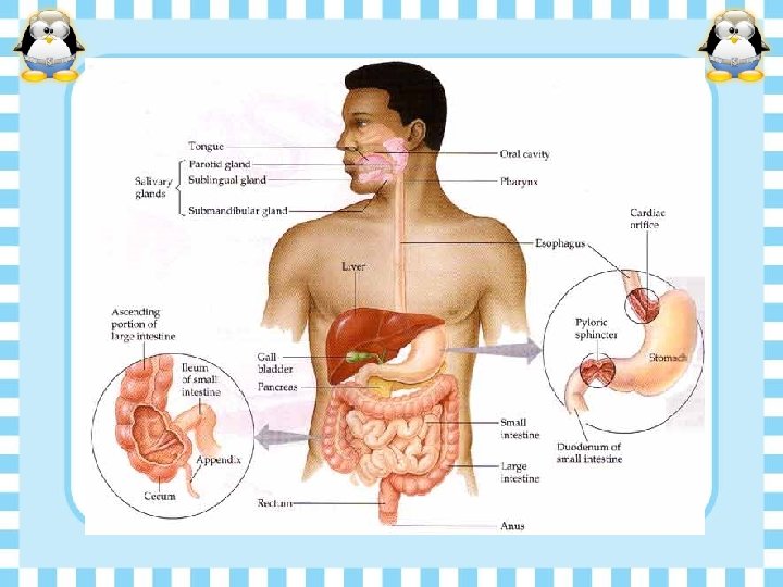 Ø Mouth& esophagus: preparation &delivery: Ø -1*mastication: Ø -chewing break-down food into smaller particles by teeth & jaw muscle with tongue. Ø -2*swallowing: Ø -occur at mouth & pharynx. Ø -rapid less than one second. Ø -coordination &swallowing comes from(swallowing centre area) in the brain stem. Ø -gravity &muscle at the base of the tongue , help in the movement of the food down to esophagus , in the upright position. Ø -in the stomach food enter by opening of the sphincter to prevent reflux , &occurrence of heart burn.