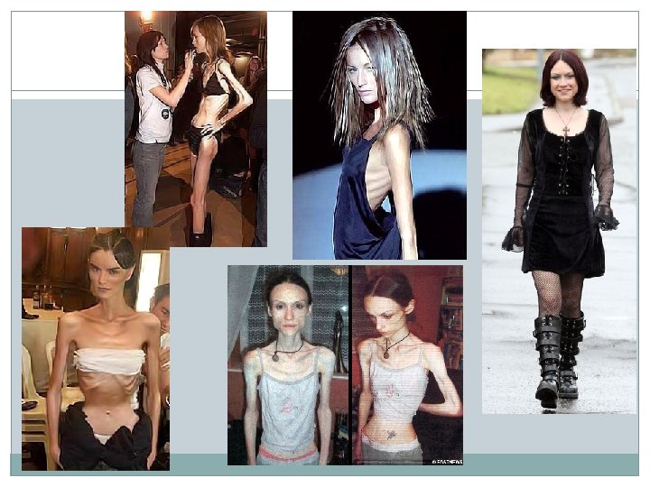 Eating Order Statics 8 million Americans have an eating disorder 7 million women and 1 million men 1 in 200 American women suffers from anorexia 2 to 3 in 100 American women suffers from bulimia Nearly half of all Americans personally know someone with an eating disorder (Note: One in five Americans suffers from mental illnesses. ) An estimated 10 – 15% of people with anorexia or bulimia are males ADOLESCENTS Anorexia is the 3 rd most common chronic illness among adolescents 95% of those who have eating disorders are between the ages of 12 -25 50% of girls between the ages of 11 -13 see themselves as overweight 80% of 13 -year-olds have attempted to lose weight