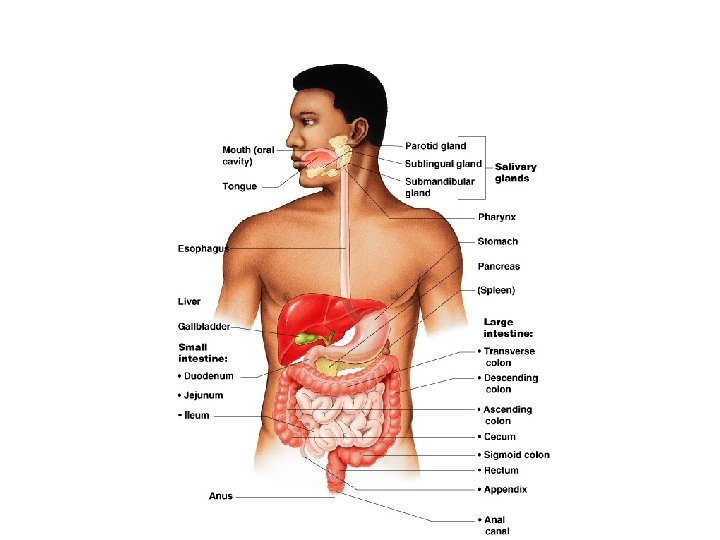 Functions of the Large Intestine 1) Absorption of water to “dry out” indigestible food 2) Eliminates indigestible food from the body as feces § Fiber is extremely important in this phase of the digestion process § Fiber helps increase the movement of feces through the L. Intestine so that carcinogens don’t have a chance to “sit around” § Should be eliminating feces at least once a day. § Foods high in fiber: whole grains (like oatmeal etc. ), fruit, vegetables) § http: //www. gutsense. org/constipation/frequency. html § https: //www. youtube. com/watch? v=mh 90 RPA-C 10 § http: //www. youtube. com/watch? v=YMB 44 VKKVLQ&feature=related 3) Does not participate in digestion of food 4) Goblet cells produce mucus to act as a lubricant