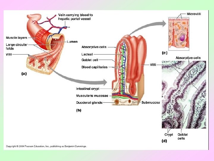 HISTOLOGY mucosa has intestinal glands (cavities) : for secretion of intestinal juice mucosa also has circular folds, villi & microvilli : for increased surface area “brush border” has many enzymes