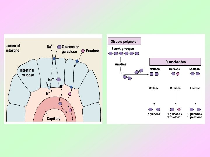 absorption of H 2 O : passive (osmotic gradient) mucosa epithelial cell of intestine : collect to form tubulus is like kidney : * functions as Na+/K+ pump within basolateral membrane * can stimulates absorption of Na. Cl & H 2 O within ileum