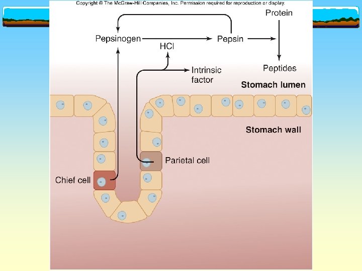 Secretion and Digestion v Protein Digestion: v v Starts in the stomach with pepsin & HCl being produced by the stomach lining. This breaks the proteins into protein fragments. Trypsin and chymotrypsin are produced by the pancreas and continue the breakdown of proteins into fragments in the sm intestine. Also produced by the pancreas, carboxypeptidase also works in the sm intestine but it breaks proteins further into amino acids. Aminopeptidase, although produced by the intestinal lining plays the same role as carboxypeptidase.