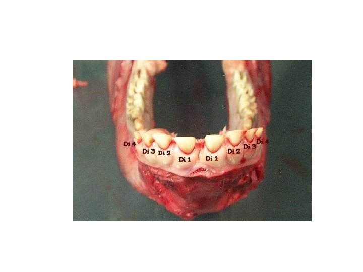 Cattle - Dentition • 14 months: – complete deciduous – short and broad – bright ivory color – space between Di 1 incisors