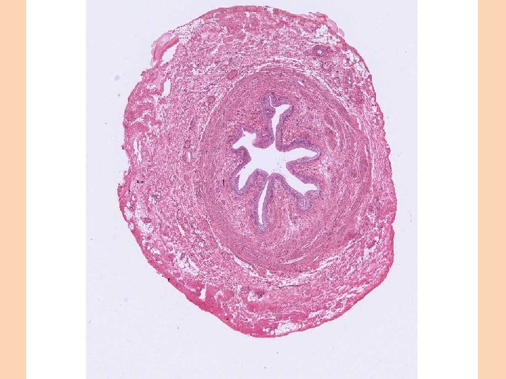 Ureter • Urothelium • Dense fibro-elastic connective tissue in the lamina propria • NO muscularis mucosae&submucosa • Muscularis externa – Inner longitudinal, outer circular layer – Serosa or Adventitia
