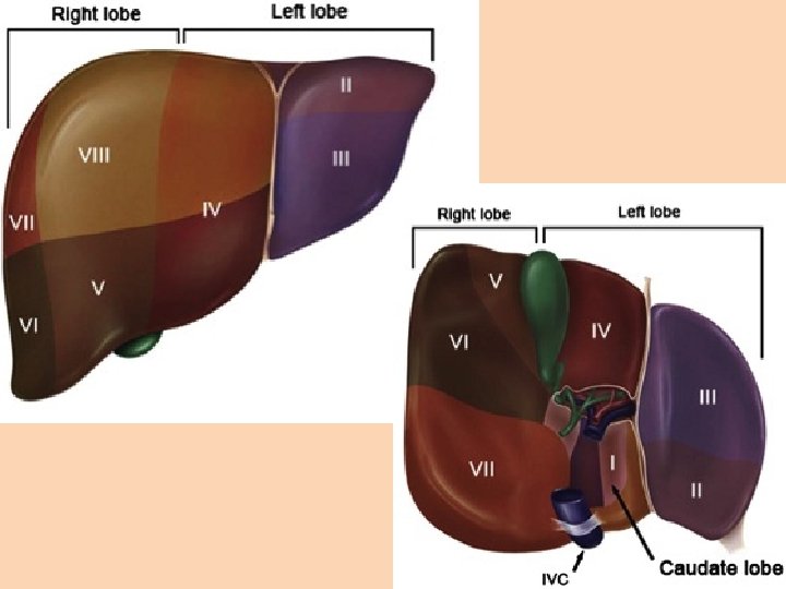 Lobes of the liver • The actual boarder is the so called Rex-Cantlie line – Line between • inferior vena cava • gall bladder