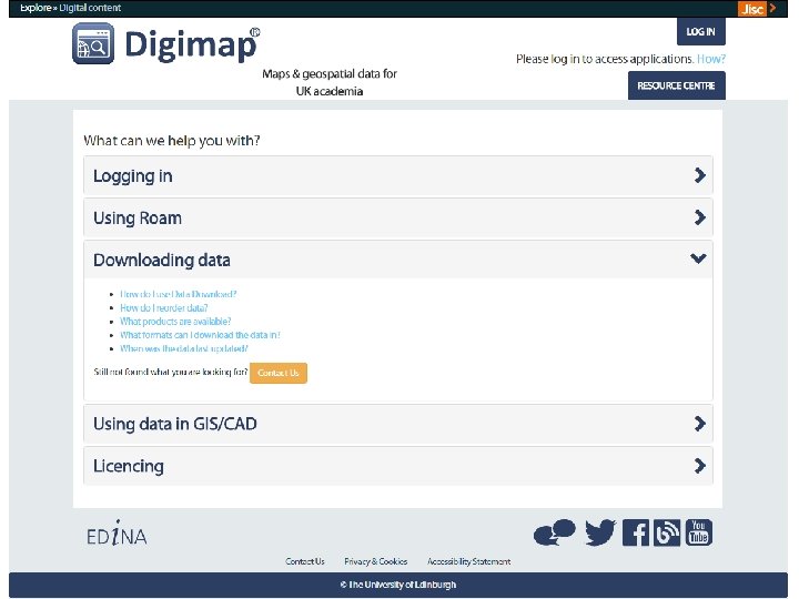 Digimap Resource Centre • • All help pages Case studies You. Tube PDF Guides Powerpoints Training materials GIS/CAD help FAQs