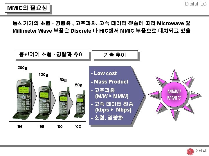 Digital LG 이동통신 MMIC 및 모듈 WORKSHOP MMIC’s for mm-wave Application LG 정밀 ㈜ 연구소 김정필 LG정밀