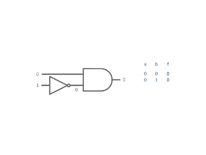 Truth Tables for Gates a 0 0 1 1 b 0 1 f. AND 0 0 0 1 a 0 0 1 1 b 0 1 f. OR 0 1 1 1 AND Operation OR Operation AND Gate OR Gate a 0 1 f. NOT 1 0 NOT Operation NOT Gate