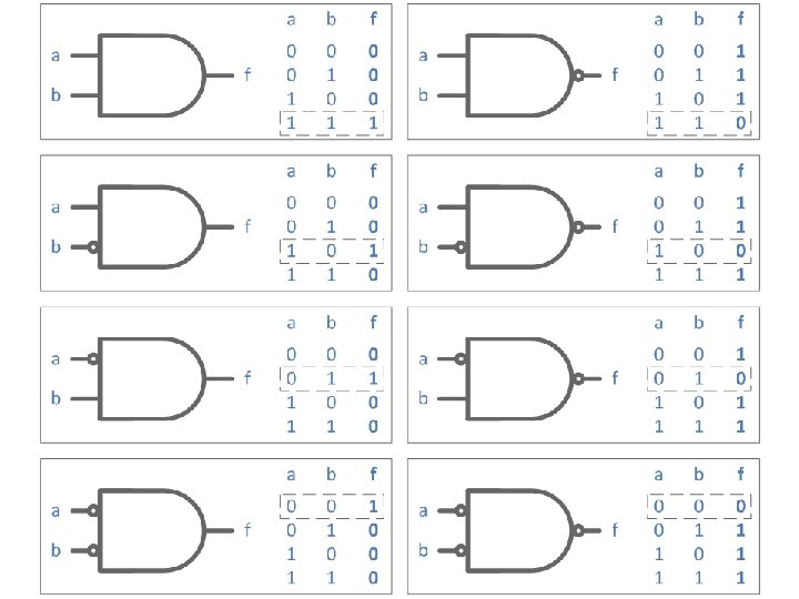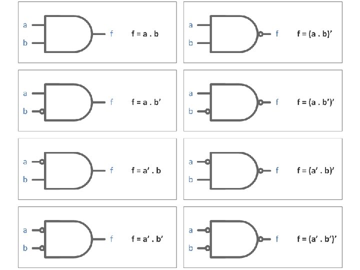 Truth Tables for Gates a 0 0 1 1 b f. NAND 0 1 1 1 0 a 0 0 1 1 b 0 1 f. NOR 1 0 0 0 NAND Operation NOR Operation NAND Gate NOR Gate a 0 1 f. BUF 0 1 BUF Operation BUF Gate