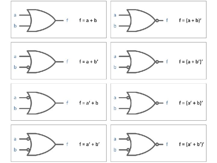 Switching Expressions f 1 = a. b’ f 2 = (a + b)’