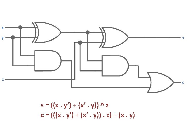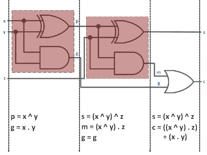 p=x^y g=x. y s = (x ^ y) ^ z m = (x ^ y). z g=g s=s c=m+g
