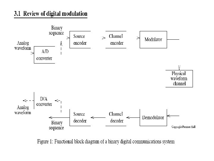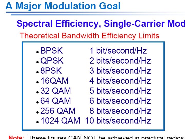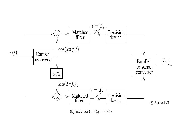 Digital Modulation Schemes transmitter receiver Transmission Modulation Amplitude Slides: 63 Download presentation Digital Modulation Schemes transmitter receiver Transmission Modulation Amplitude Modulation Double Sideband Spectrum QPSK modulation In Practice RZ and NRZ Line Codes & spectra Nyquist Pulses for zero-ISI Raised Cosine Spectrum Spectrum of Raised Cosine pulse Raised Cosine pulses RF signal using Raised Cosine Gaussian pulse-shapes Virtue of pulse shaping BPSK constellation BPSK Coherent demodulator QPSK receiver FSK Coherent Detection Noncoherent FSK MSK modulation MSK reception Minimum Shift Keying spectra GMSK spectral shaping GMSK spectra shaping Simple GMSK generation GMSK Demodulator Digital GMSK demodulator 8 -PSK Signal Constellation Bandwidth vs. Power Efficiency Pulse Shaped M-PSK 16 -QAM Signal Constellation QAM efficiencies M-ary FSK efficiencies PN Sequence Generator Direct Sequence Spread Spectrum Direct Sequence Spreading Frequency Hopping Spread Spectrum CDMA – Multiple Users Effects of Fading Irreducible Bit Error Rate due to multipath Irreducible Bit Error Rate due to multipath Simulation of Fading and Multipath Irreducible BER due to fading Irreducible BER due to fading BER due to fading & multipath Back Up Product Detection Slope Detector for FM Digital Demod for FM PLL Demod for FM FM Demod circuit