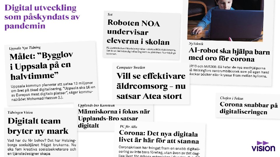 Nya möjligheter ►Förbättra kvalitet och tillgänglighet ►Förbättra medarbetares digitala arbetsmiljö ►Frigöra resurser och fördela dem där det behövs ►Öka den enskildes självständighet och delaktighet