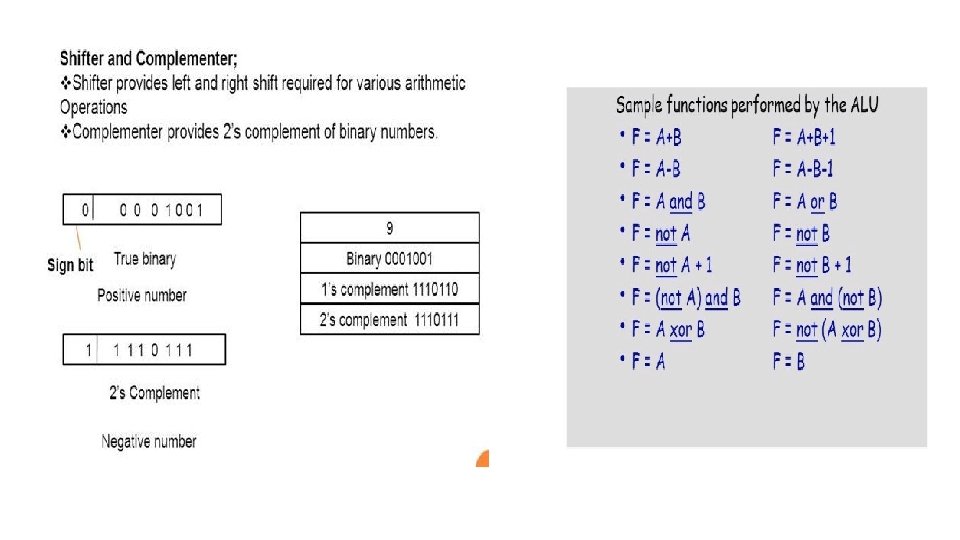 Arithmetic Logic Unit (ALU) • ALU is a purely combinational device: It has no memory or internal storage • It has two input vectors These may be called as A and B vector or the R and S vector The inputs are as wide as registers/ system bus (i. e. 16, 32 bits) • It has one output vector Usually denoted as F