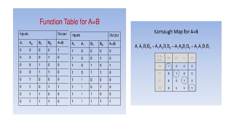 Circuit-to-Boolean Equation AB A AND B OR Y=AB + AC } } A NOT C AND AC A 0 0 1 1 B C 0 0 0 1 1 Y 0 1 0 0 1 1