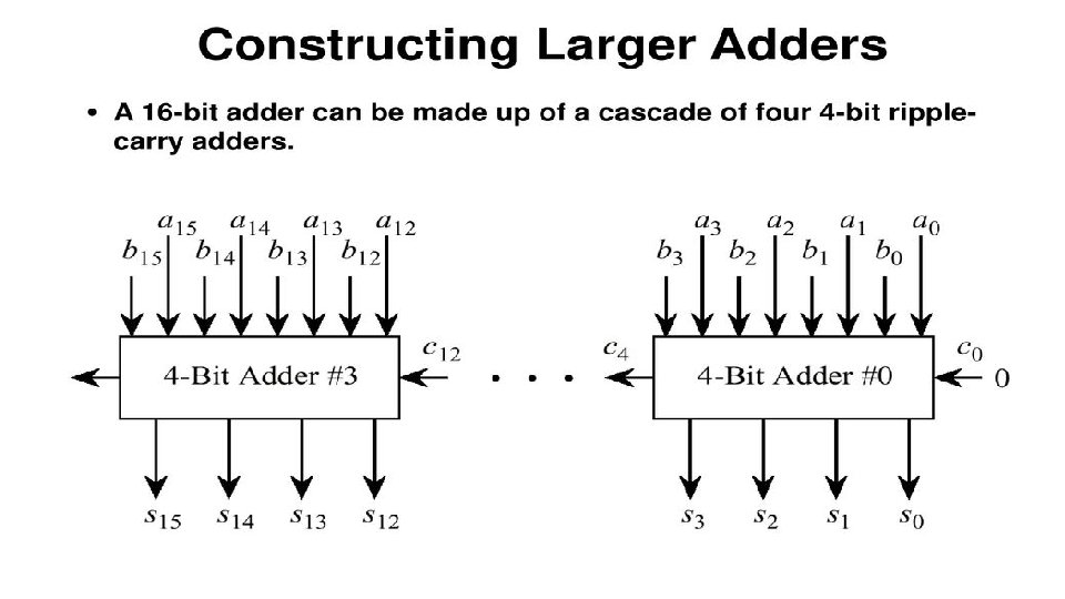 Procedure The bits are added with full-adder. Starting from the least significant position to form the sum and carry. The input carry CI 1 in the least significant position must be zero. The value of CIi+1 in a given significant position is the output carry CO of the full adder. This value is transferred into the input carry CI of the full-adder that adds the bits one higher significant position to left. The sum bits are thus generated starting from the rightmost position and are available as soon as the corresponding previous carry bit is generated.