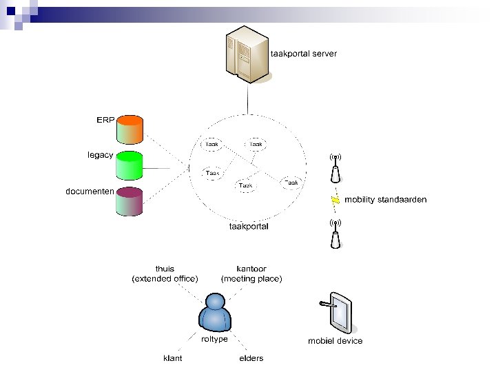 Voorbeelden principes n n Just-in-time aanwezigheid van noodzakelijke informatie, kennis en expertise op muisklik afstand Maximale ondersteuning thuiswerk