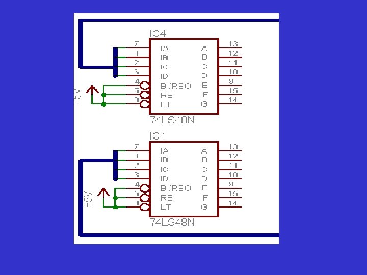 Functietabel 74 LS 48 LT, RBI en BI/RBO moeten hoog gehouden worden opdat het IC correct decodeert.
