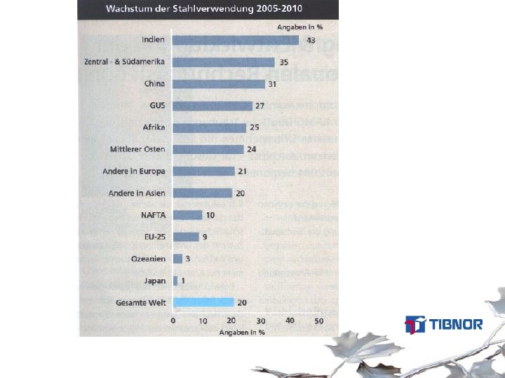 Råmaterial • I 30 år har tillväxten inom stålproduktion varit ca 1% per år • Mogen bransch => låg investeringstakt • Prognosen för ny takt: 5 -6 % per år i 10 -20 år • Hinner leverantörer av råmaterial med?