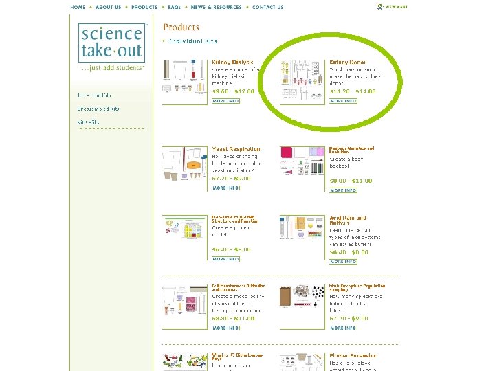 Science Take-Out Kits: • Each kit contains all the materials needed. No teacher prep required! • Kits can be used in non-school settings – no lab facility or equipment needed. • Kits may be used by educators with minimal science background or teaching experience. • All kits are field tested by teachers in a variety of settings. • Kit are sold individually, so you can buy just what you need.