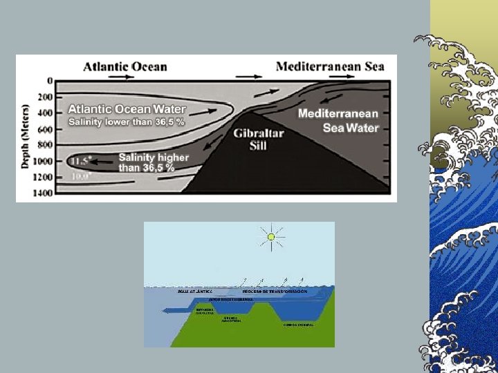 ©Factores que favorecen el hundimiento: ©Disminución de la temperatura en superficie ©Aumento de la salinidad : ©Cuando la evaporación es mayor que la precipitación ©Con la formación de hielos (banquisas)