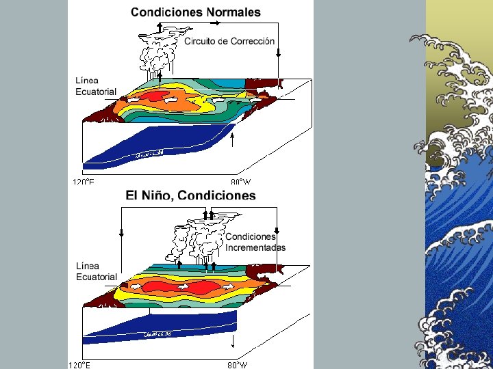 ¿Causas? Nada claro, distintas propuestas © Pequeñas variaciones de la actividad solar © Leves fluctuaciones de la rotación terrestre © Liberación de energía debido a fenómenos sísmicos o volcánicos en los fondos oceánicos © Calentamiento global (atenuaría el contraste térmico entre ambas orillas del Pacífico, dulcificando los alisios)
