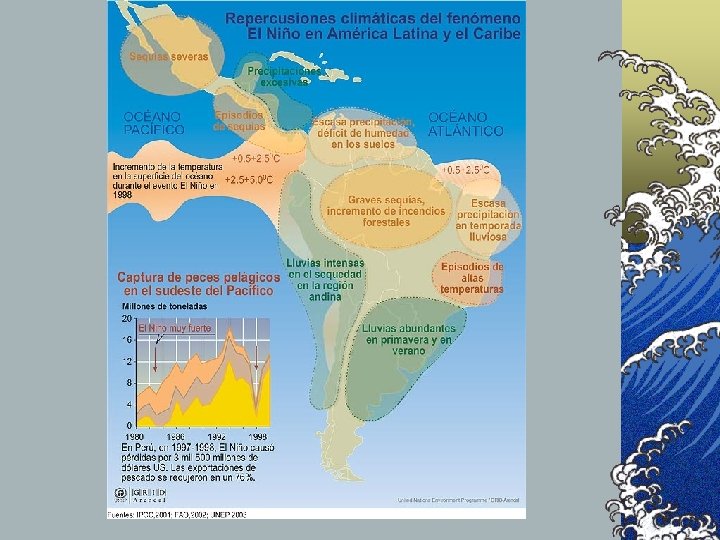 ©Esta alteración en la superficie del mar fue asociada con la disminución de la pesca, cambios en las precipitaciones y en la flora y fauna del país.