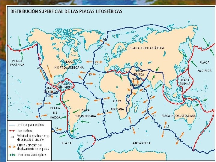 • Las placas se mueven en diferentes direcciones: • Algunas se separan (pacifico-nazca) • Otras se juntan o chocan (nazca sudamericana) • O tienen un movimiento paralelo. (pacificonorteamericana)
