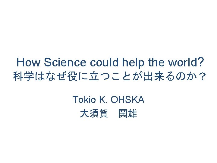 Scientific Evidence presented with proofs can be very persuasive! 実証に基づいた科学の検証は、人 々を確信させることが出来る。