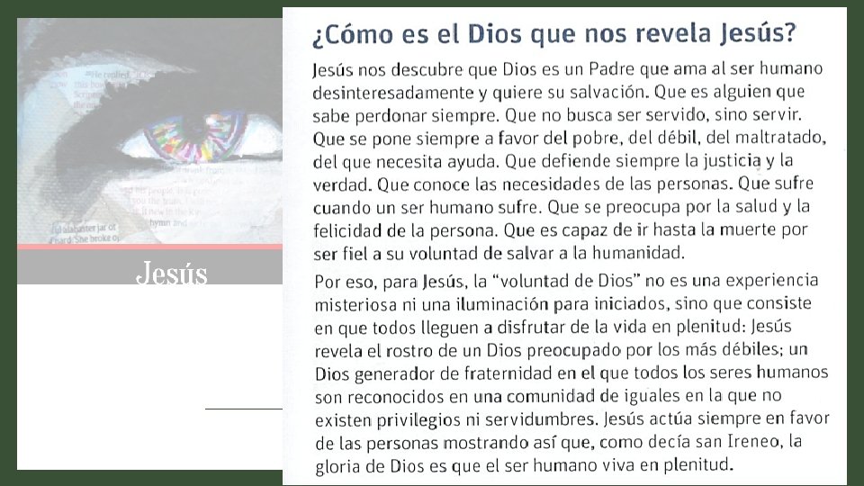 «¿Quién eres? ¿Dónde estás? ¿Cómo hablarte? ¿Dónde vives? ¿Cómo me hablas? Mil cuestiones se atropellan en mi mente cuando trato de acercarme a ti. De ti me han hablado mil voces. Te he visto en cuadros, carteles, imágenes, películas; he oído cómo se te describe en canciones y poemas, y al final siempre que creo empezar a entenderte me sigues sorprendiendo» . Jesús es como esa imagen impresionista, de la que aprendemos a ver formas, colores, trazos que nos inspiran y evocan una figura que nunca terminamos de percibir en toda su riqueza. Y, sin embargo, esos mismos colores, esa forma intuida, ese perfil indefinido está lleno de fuerza. Inspira, sugiere, invita, llama, provoca, reta, acoge, cura, ilusiona, asusta, sorprende, emociona, limpia. ¿Quién eres, Jesús? ¿Dónde estás?