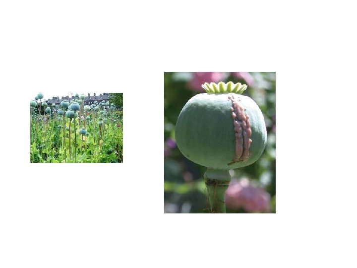 • Harvesting of seeds • The capsules, after the lancing operation and collection of opium latex, are allowed to dry on the plant itself. The drying process takes about 15 days after the lancing is completed. In India, the capsules are plucked by hand the seeds are separated after breaking the capsules. Are plucked by hand the seeds are separated after breaking the capsules. • A dry capsule weighs about 7 g and it contains 11 to 12 thousand weighing about 3. 5 to 4 g. • Yield of crude opium and seed • On an average 25 -30 kg/ha of crude opium and 400 -500 kg/ha of seeds are obtained in