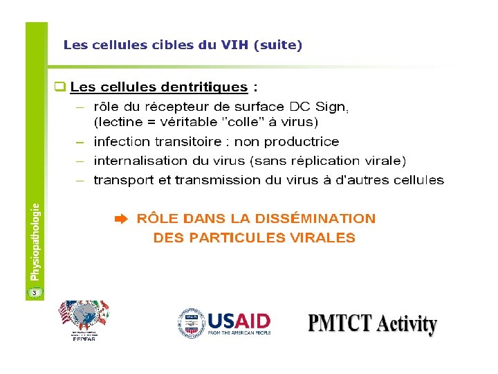 VIH et notion de « récepteur » • Capture du virus au niveau génital par les cellules dendritiques • Rôle du DC-SIGN • Cellules dendritiques migrent vers les ganglions siège de la réaction de défense de la part de l’organisme • La présentation de l‘antigène (VIH) • Théoriquement doit empêcher le microbes de diffuser • Sensibilise le système immunitaire qui va de façon retardé produire des anticorps et des cellules T cytotoxiques • Pour le VIH : infection des lymphocytes T 4 (helper)