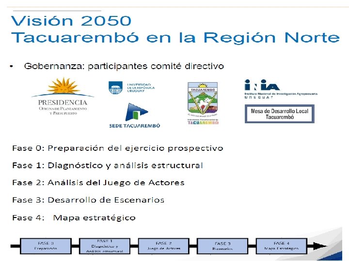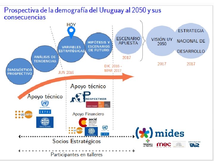 Pensar el largo plazo • Voluntad política: anticipar los futuros para implementar políticas (PLANIFICAR) • Algunos Antecedentes en Uruguay: – Comisión de Inversiones y Desarrollo Económico (CIDE) (1960 -1967) – Uruguay 2025: Economía, Población y Territorio, (DINOT, MVTOMA) (2004) – Estrategia Uruguay III Siglo (2030) (OPP) (2008)